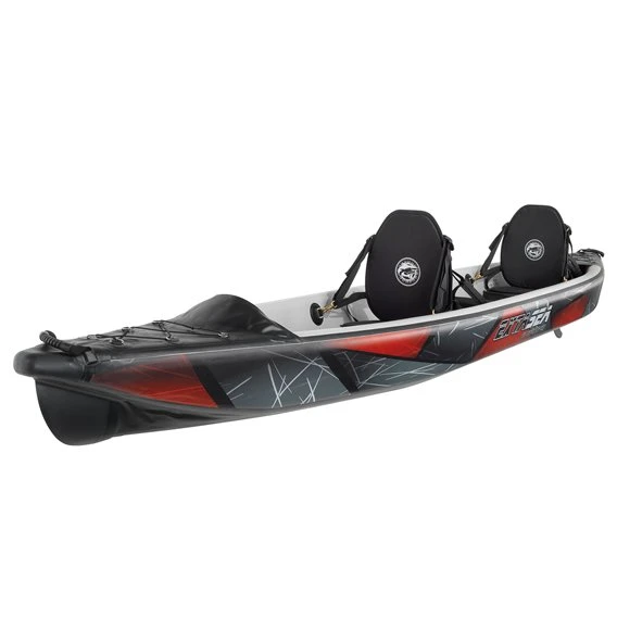 Das Boot wurde im Drop-Stitch Verfahren gefertigt, welches es ermöglicht, das Kajak mit einem höheren Betriebsdruck (bis zu 10 PSI) aufzupumpen. Es liegt dadurch viel fester und kippstabiler auf dem Wasser und bietet einen schnelleren Geradeauslauf. Einfach mal zurücklehnen: Eine großzügige Beinfreiheit, Fußstützen und Sitze mit hoher Rückenlehne, sorgen für Komfort beim Paddeln und lassen euch unterwegs noch besser entspannen.